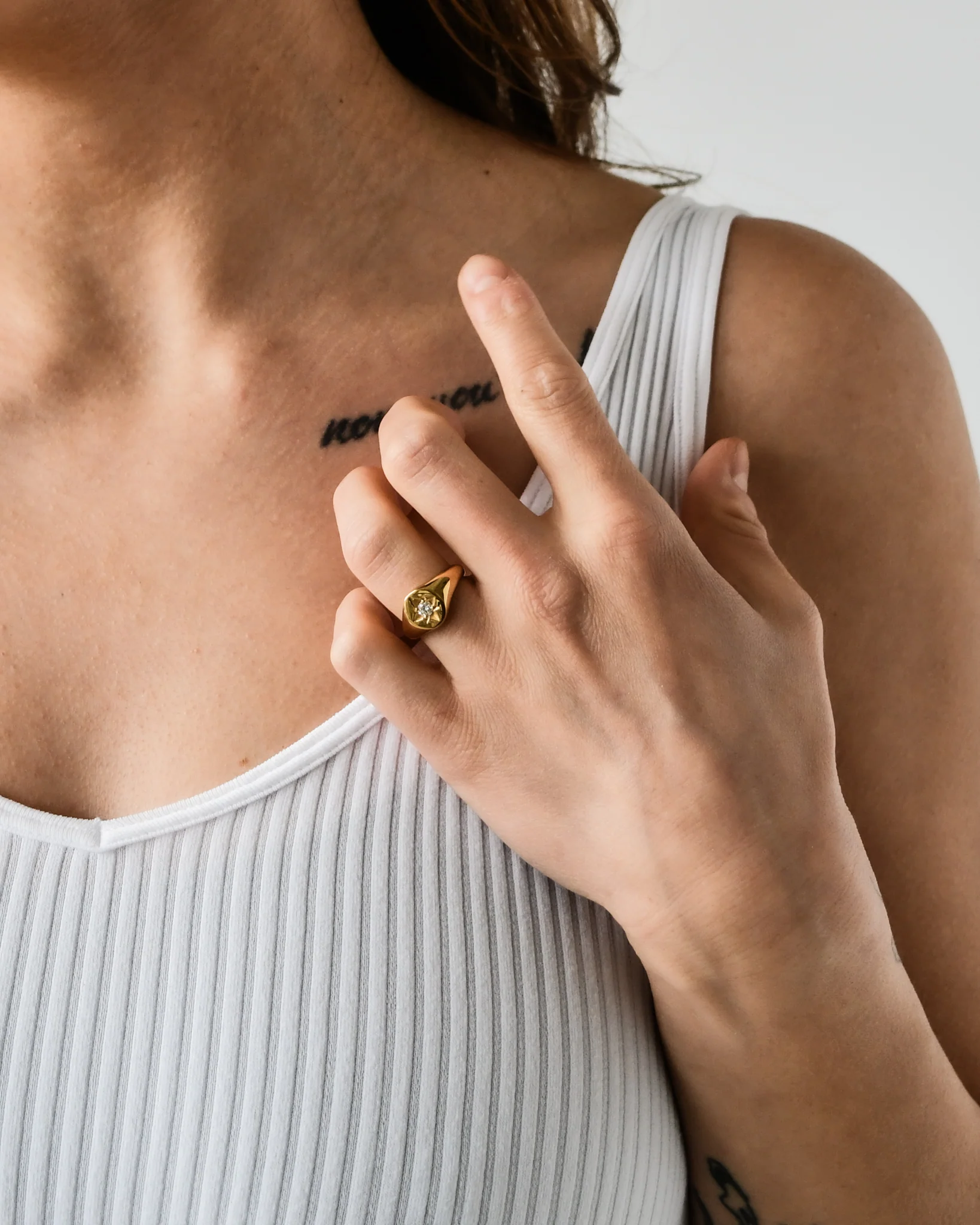 A STAR-SET GEMSTONE SIGNET RING FOR THOSE WITH A COLORFUL UNIVERSE. NATURAL MOISSANITE ORIGINATES FROM METEORITES AND SIGNIFIES CONNECTION TO THE UNIVERSE.