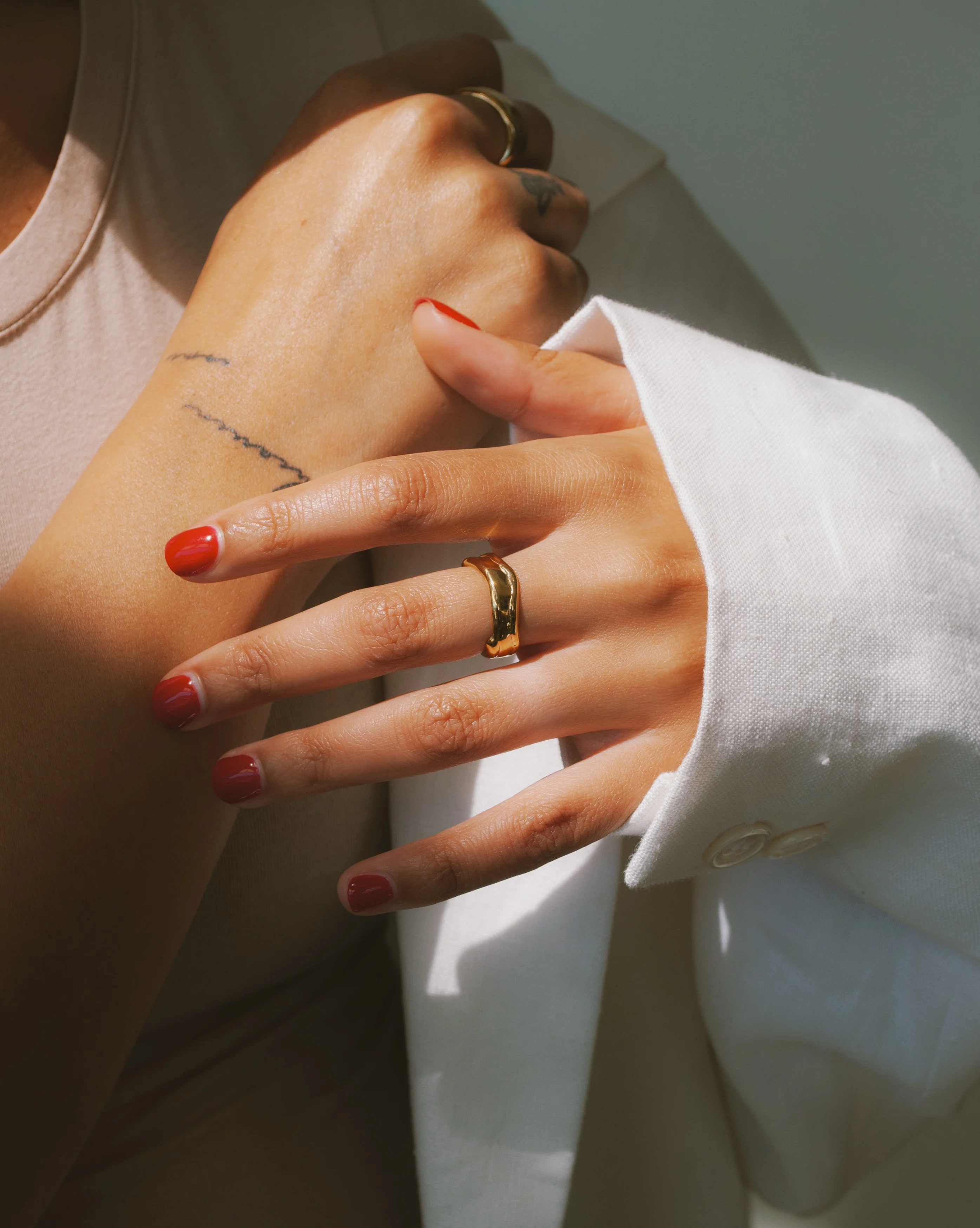 FOREVER BEING FORMED AS IT SPINS AROUND YOUR FINGER ALL DAY. A LOVELY FLUID LOOK FOR SOME DYNAMISM AND TEXTURE.